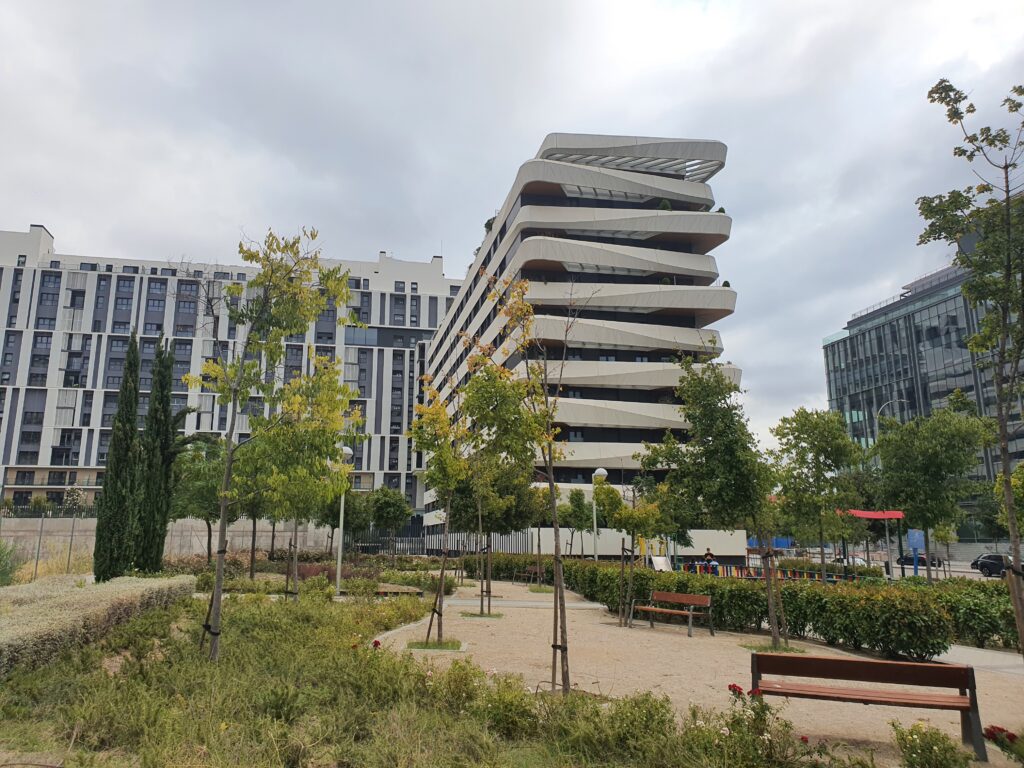 Por otro lado, el proyecto ubicado en Méndez Álvaro (Madrid), se constituye en un edificio de 13 plantas con 455 viviendas con sótanos, con más de 500 detectores en su sistema de detección y extinción manual con unos 200 puntos y extinción automática con más de 3.400. También se acompaña con sistema de sirenas y señalética en cumplimiento de norma, que ha sido validada por los organismos de control pertinentes (EICI).